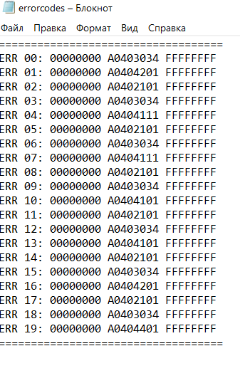 ERR 08: 00000000 A0403034 FFFFFFFF